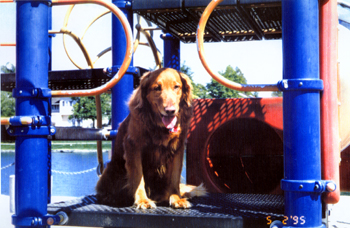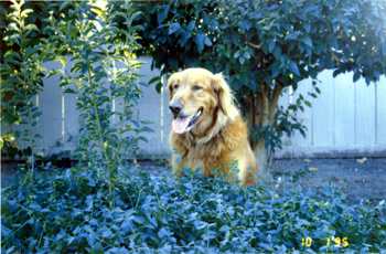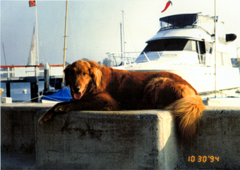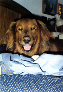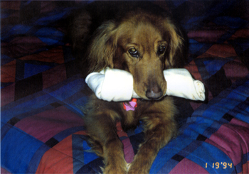 January 19, 1994 On my bed in Tustin He loved that rawhide bone. |