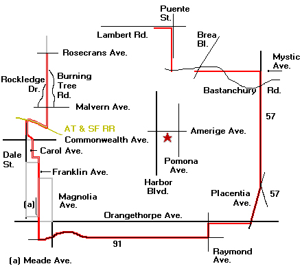 South side of Amerige Ave. between Harbor Blvd. and Pomona Ave.