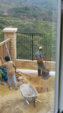 ![]() Robert and Juan (f) scope out where to put plants while the other two (names unknown) dig the spot for the plum tree |