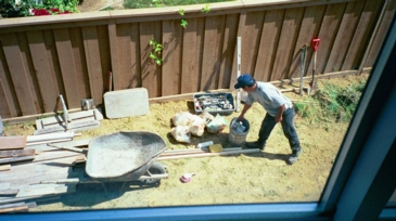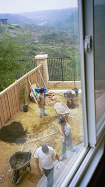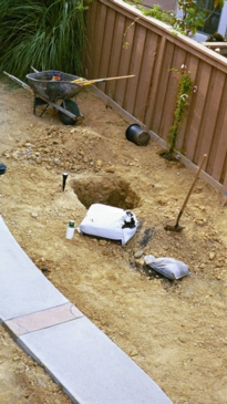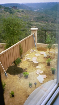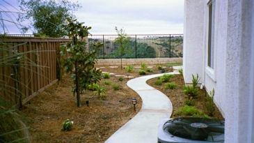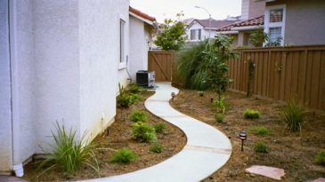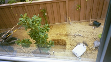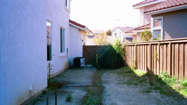 This is the narrower of the two side yards. It is on the northeast side of the house and is shady all day in winter, and after mid-day in summer.