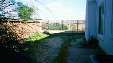 This is the narrower of the two side yards. It is on the northeast side of the house and is shady all day in winter, and after mid-day in summer.